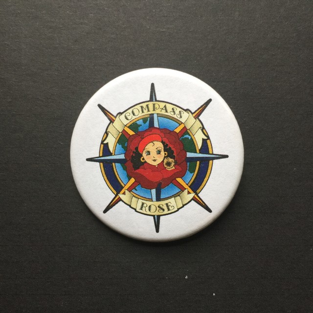 Compass Rose is as cute as a button, and so is this! Add it to your collection. Classic lapel button sports the original Compass Rose Voyager logo on a white background. 1.5" diameter.